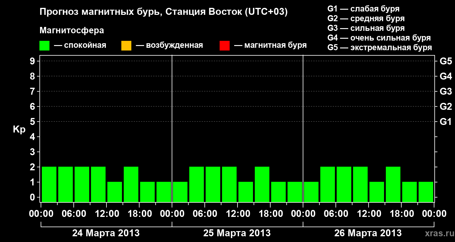 Прогноз магнитных бурь локации Станция Восток — 24 марта 2013 года