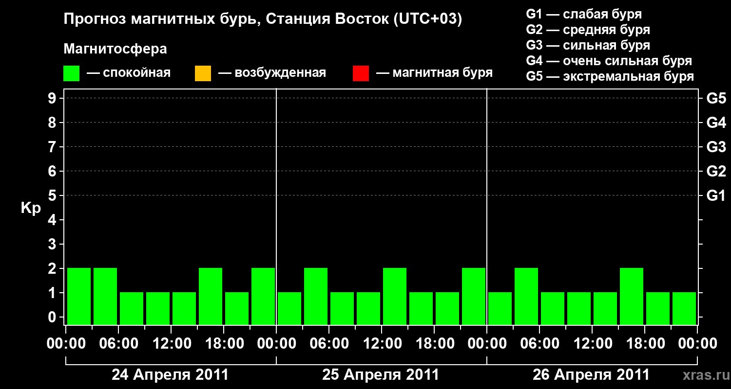 Прогноз магнитных бурь локации Станция Восток — 24 апреля 2011 года