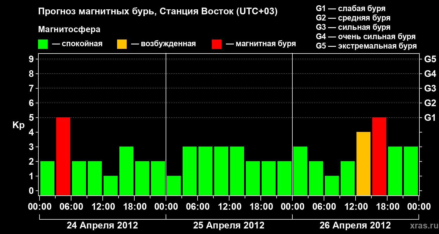Прогноз магнитных бурь локации Станция Восток — 24 апреля 2012 года