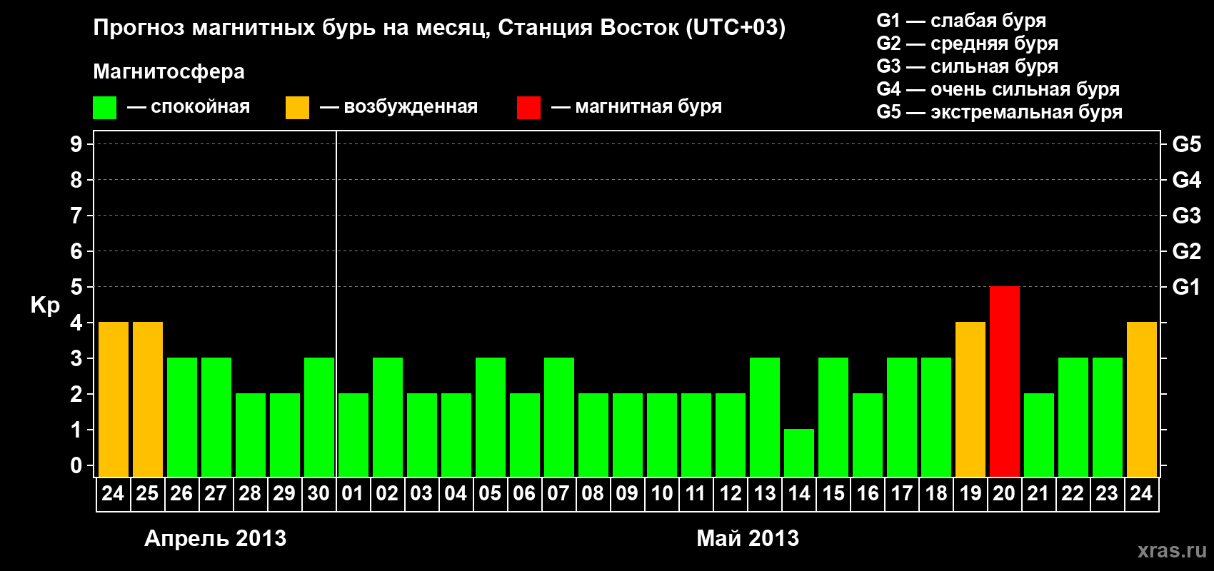 Прогноз магнитных бурь локации Станция Восток — 24 апреля 2013 года