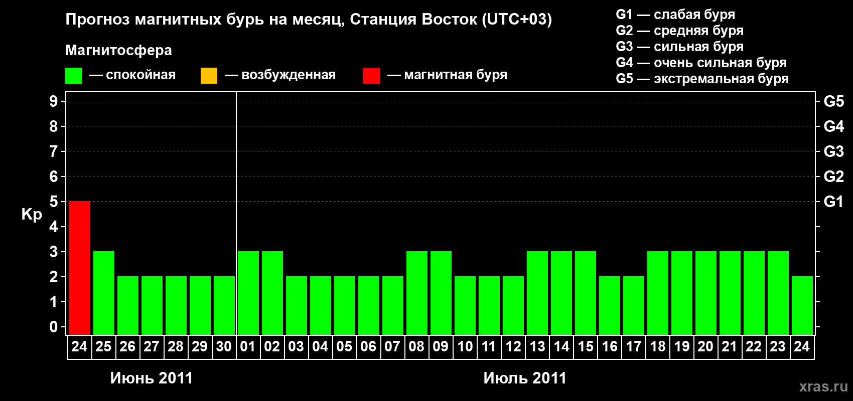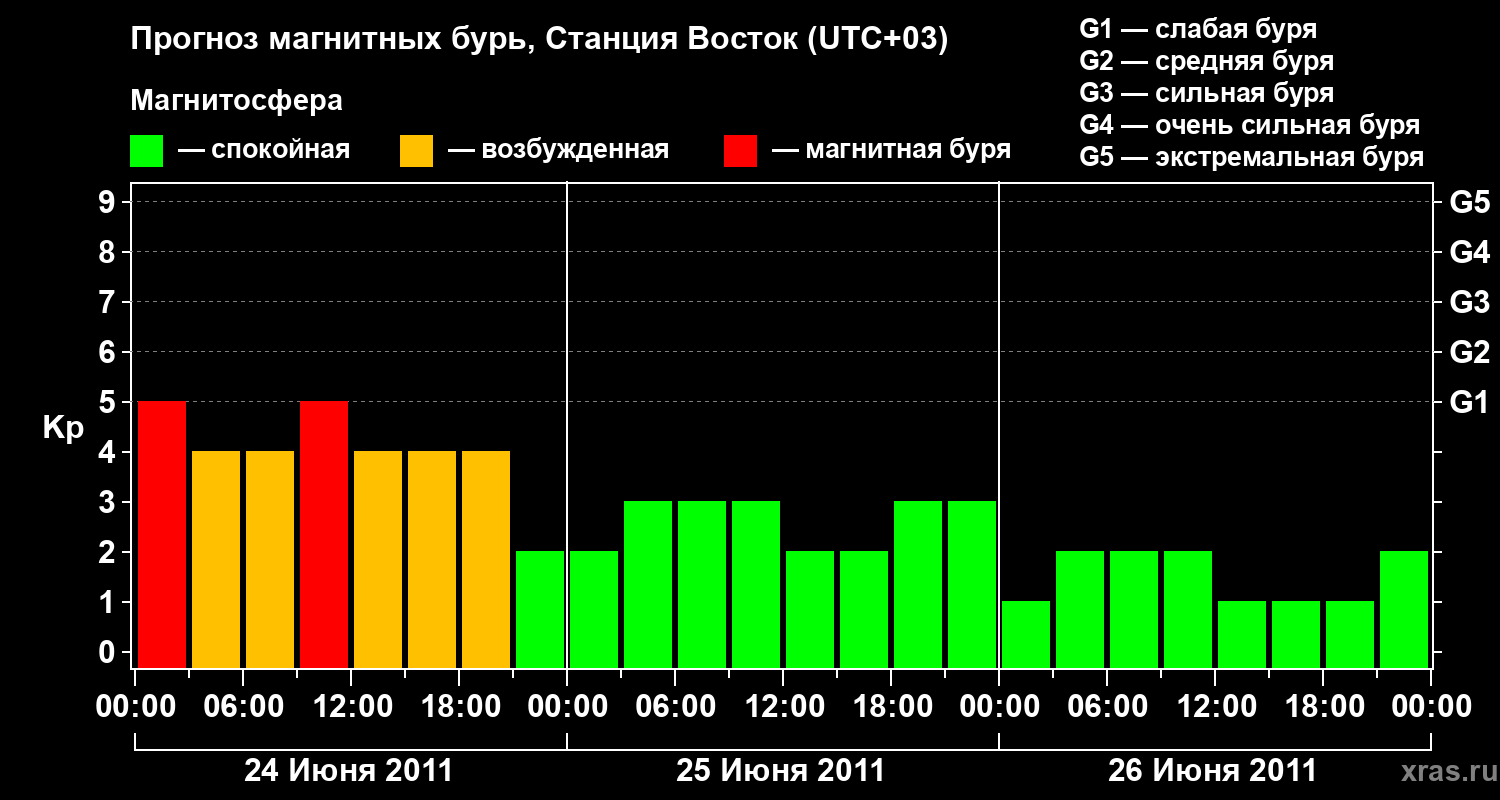 Прогноз магнитных бурь локации Станция Восток — 24 июня 2011 года