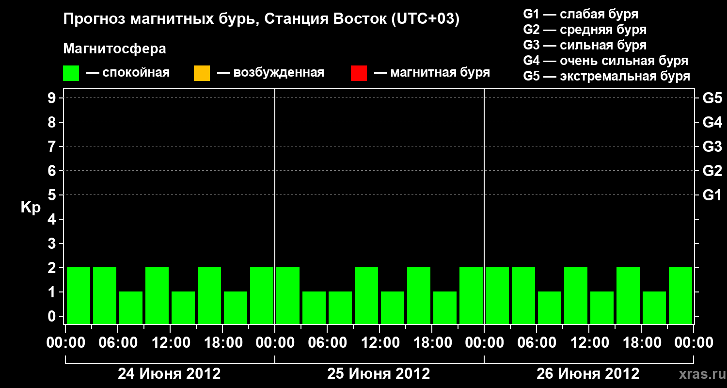 Прогноз магнитных бурь локации Станция Восток — 24 июня 2012 года