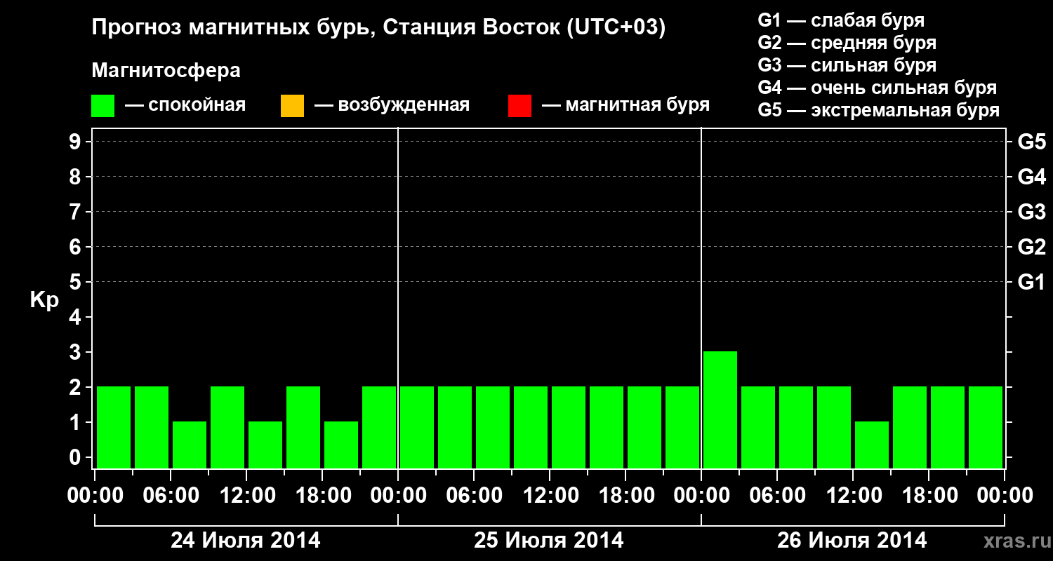 Прогноз магнитных бурь локации Станция Восток — 24 июля 2014 года