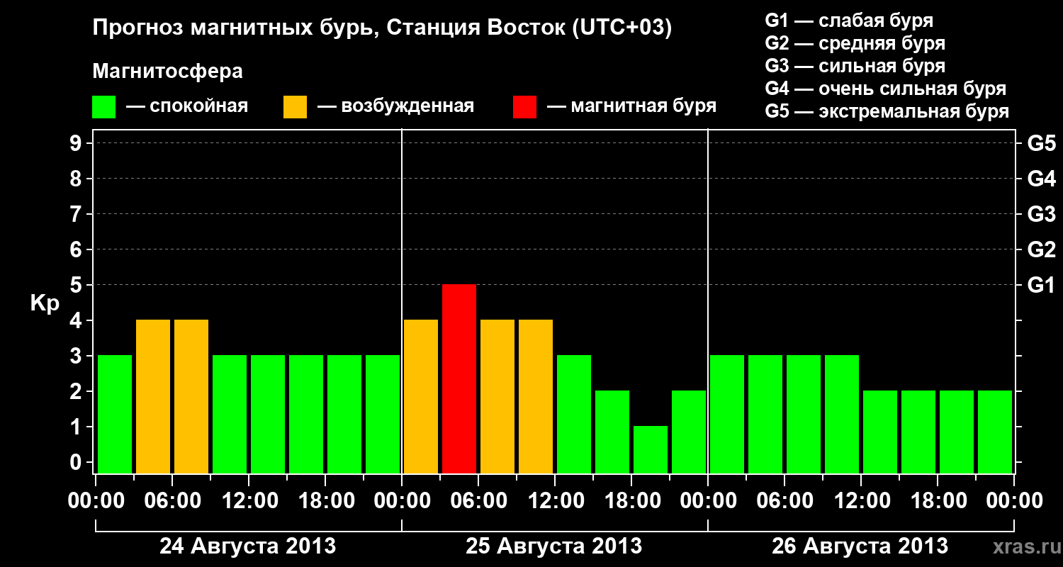 Прогноз магнитных бурь локации Станция Восток — 24 августа 2013 года