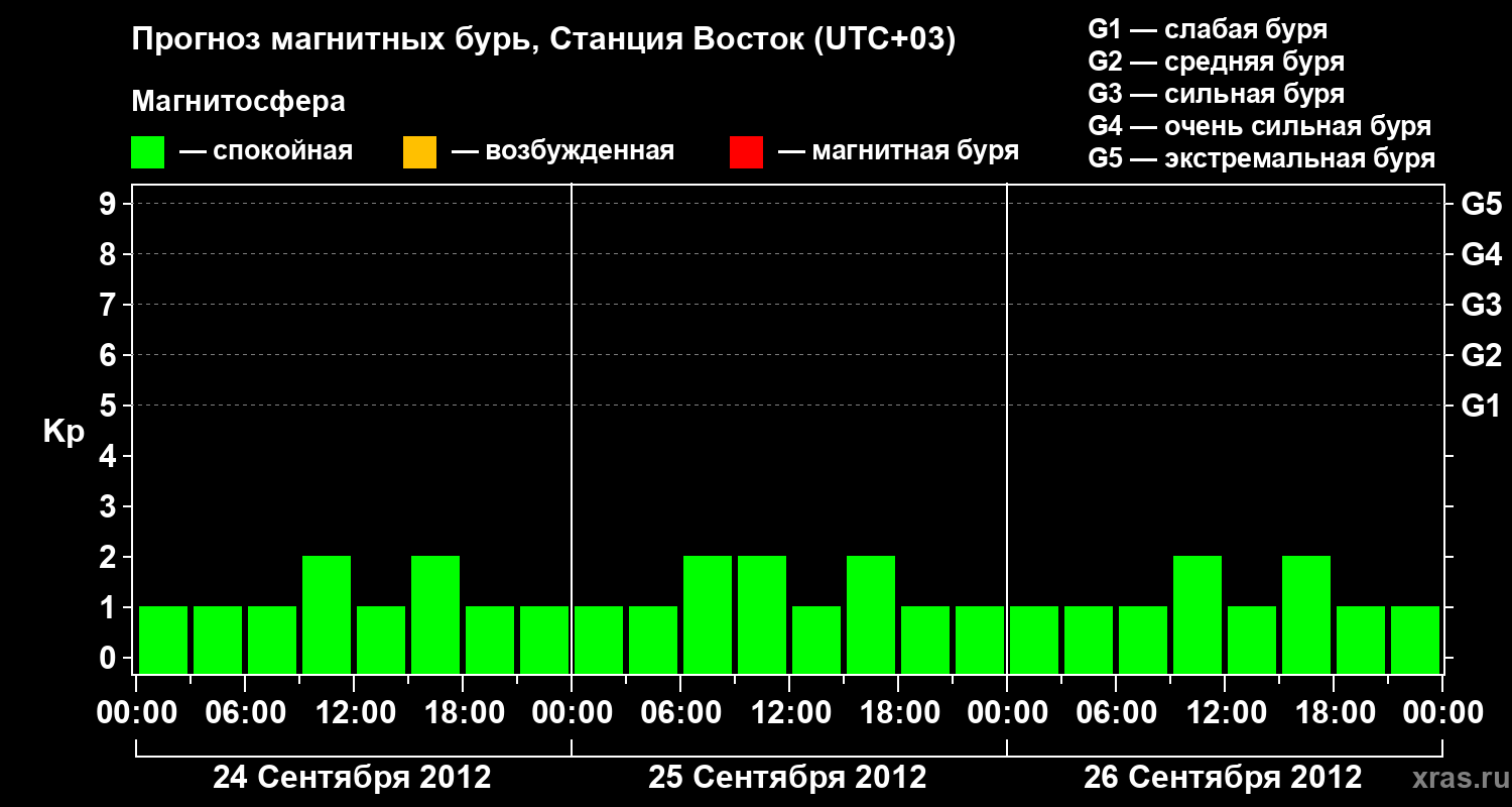 Прогноз магнитных бурь локации Станция Восток — 24 сентября 2012 года