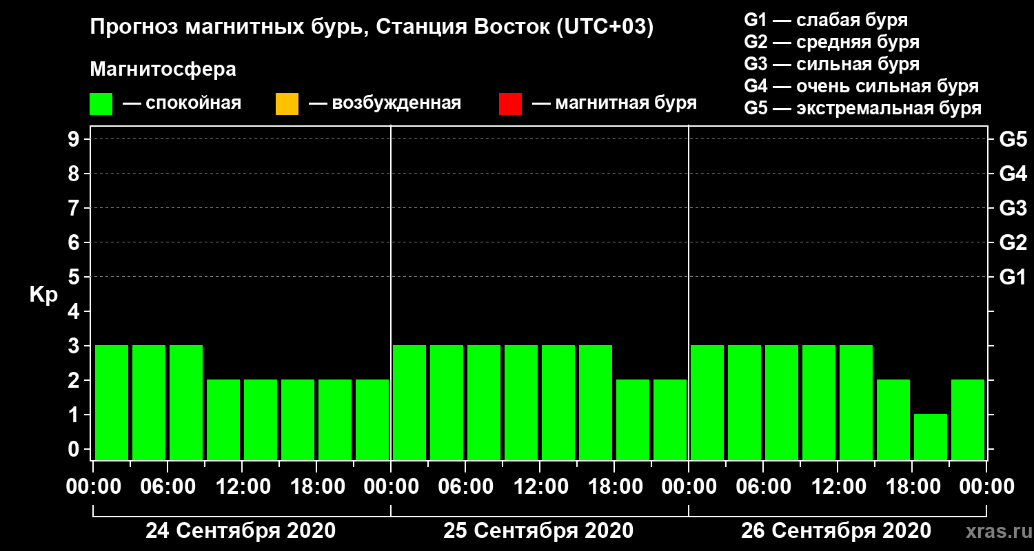 Прогноз магнитных бурь локации Станция Восток — 24 сентября 2020 года