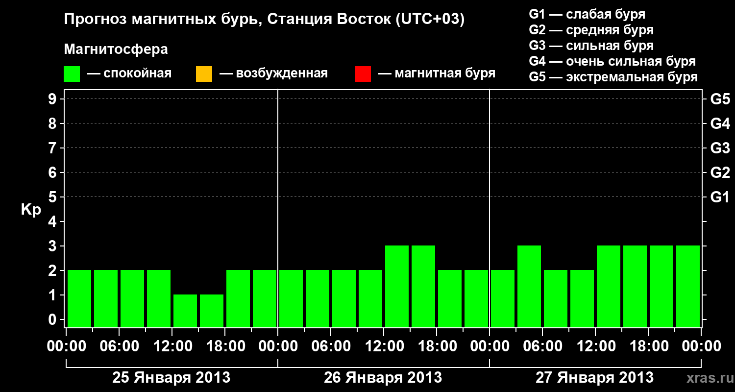 Прогноз магнитных бурь локации Станция Восток — 25 января 2013 года