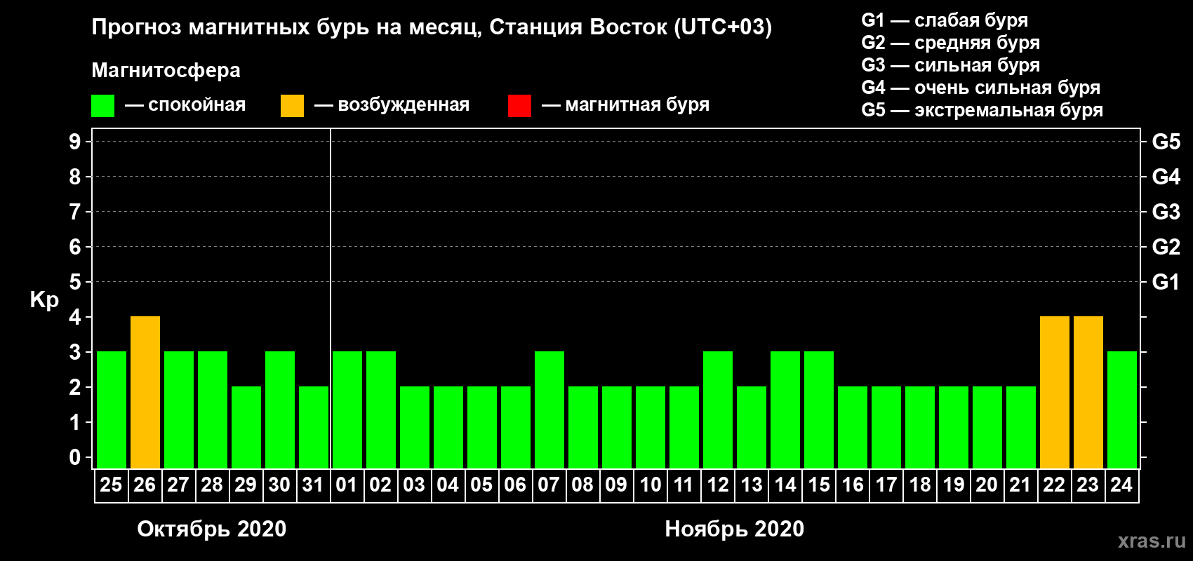 Прогноз магнитных бурь локации Станция Восток — 25 октября 2020 года