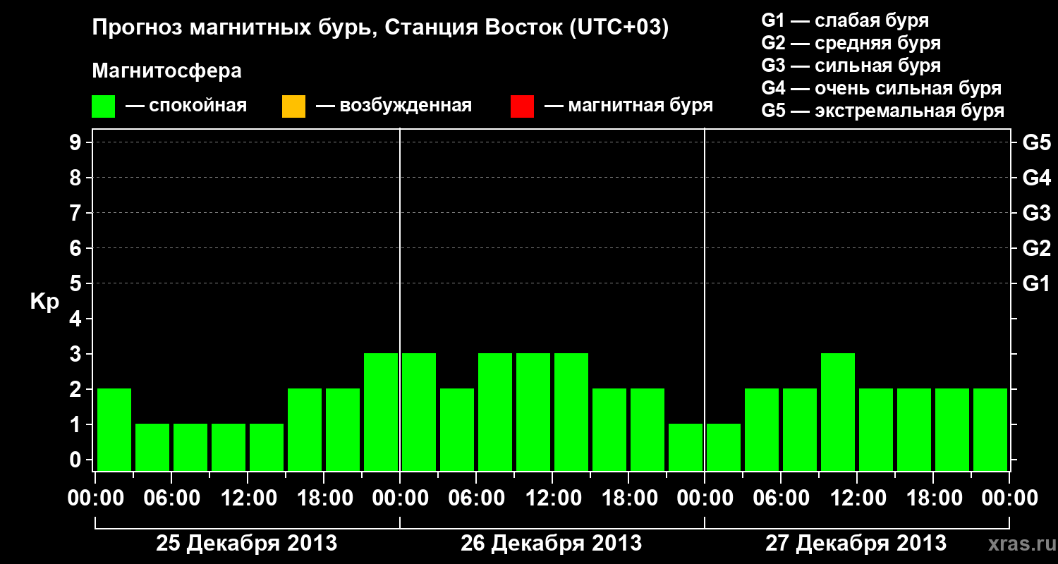 Прогноз магнитных бурь локации Станция Восток — 25 декабря 2013 года