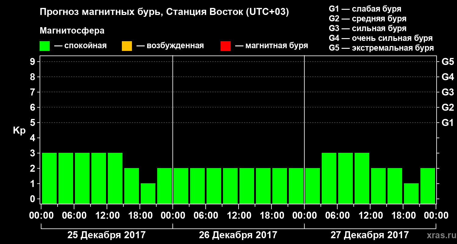 Прогноз магнитных бурь локации Станция Восток — 25 декабря 2017 года