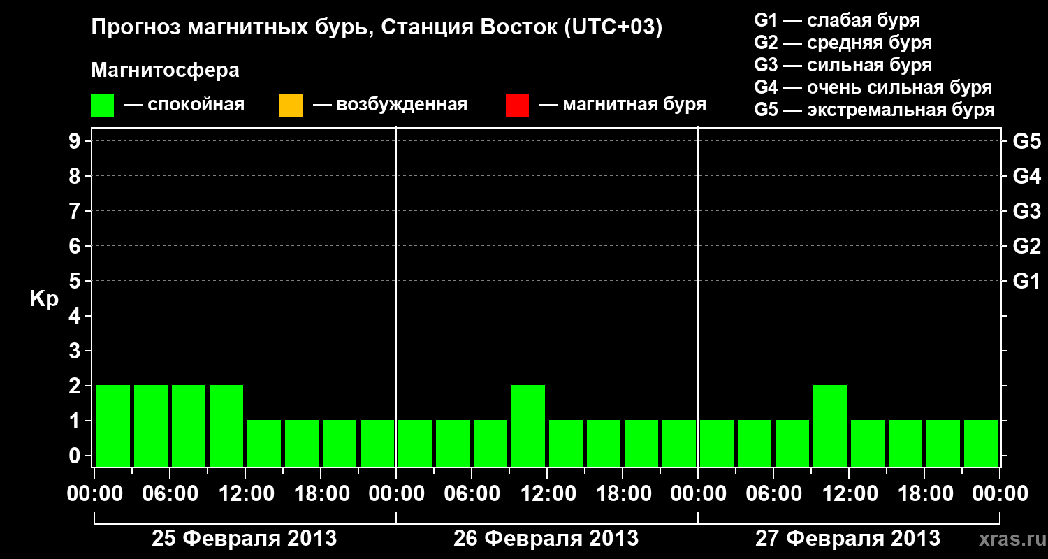 Прогноз магнитных бурь локации Станция Восток — 25 февраля 2013 года