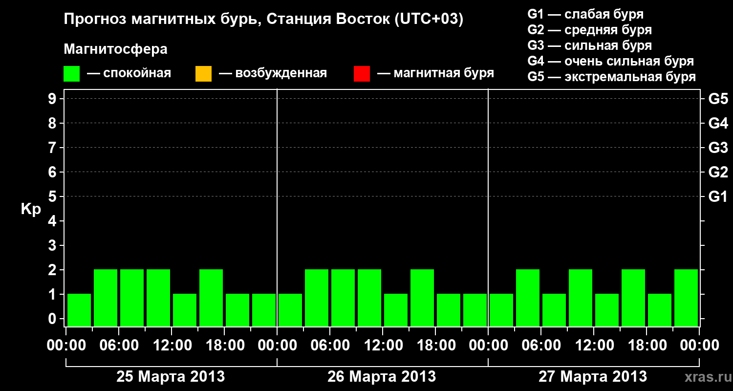Прогноз магнитных бурь локации Станция Восток — 25 марта 2013 года