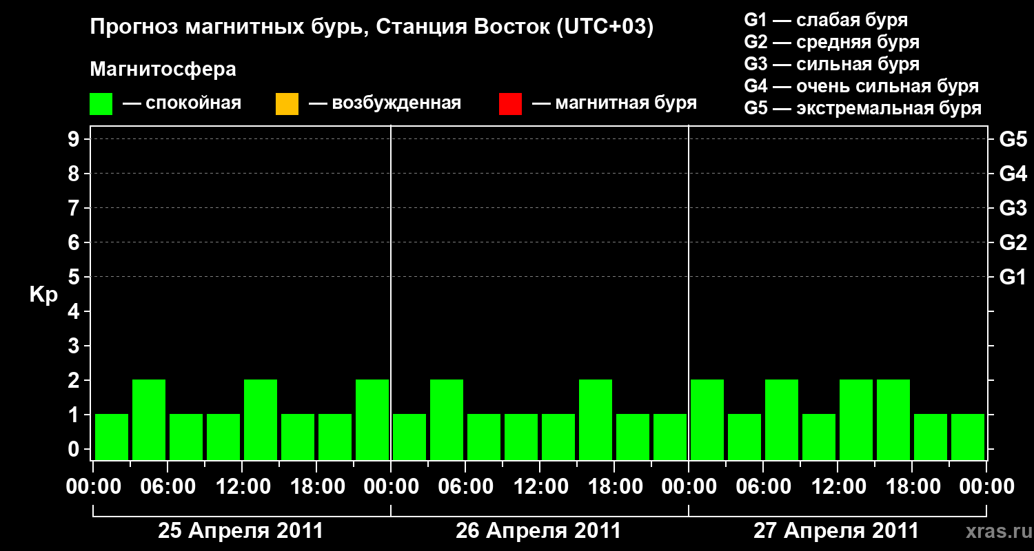 Прогноз магнитных бурь локации Станция Восток — 25 апреля 2011 года