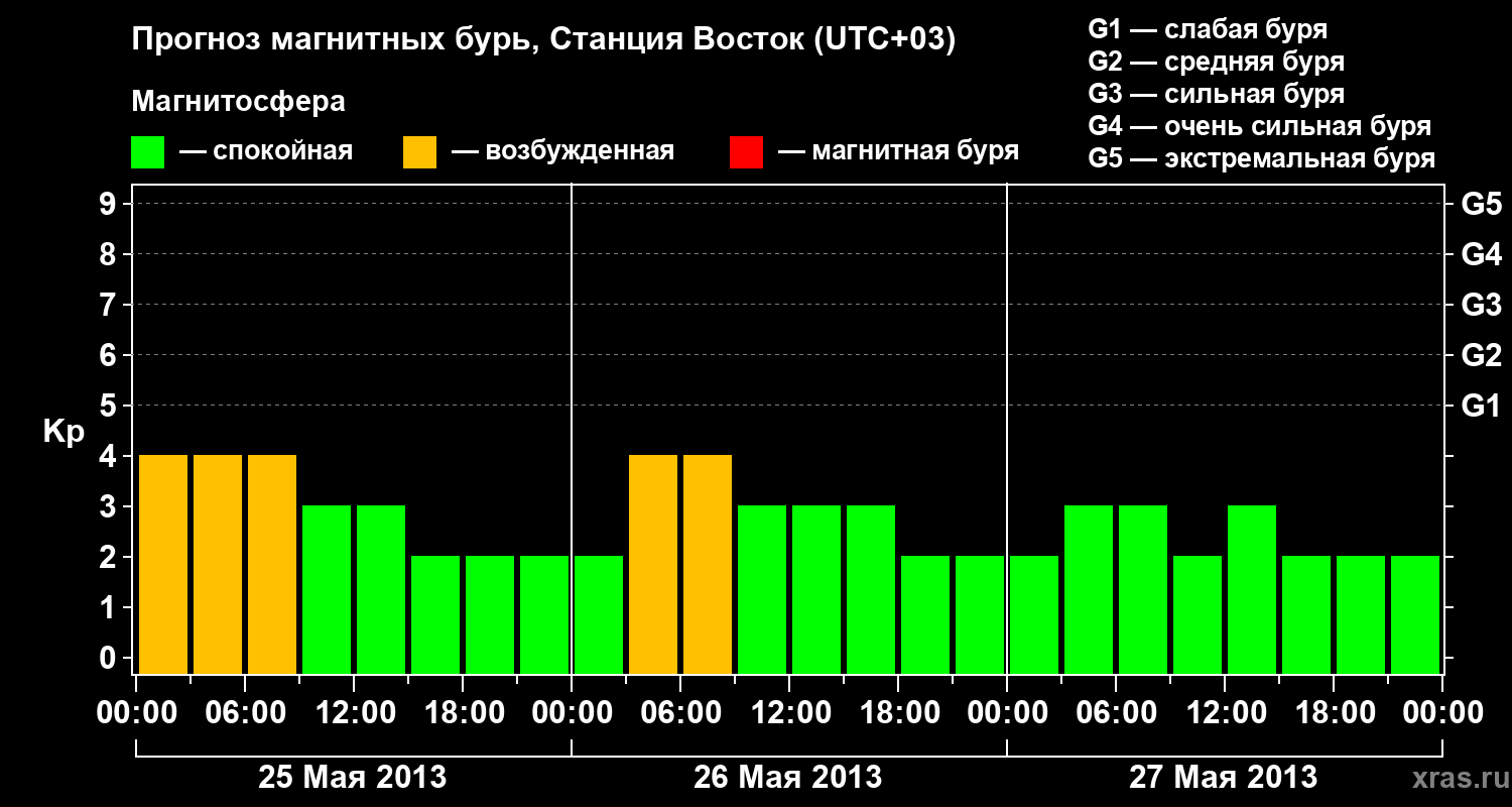 Прогноз магнитных бурь локации Станция Восток — 25 мая 2013 года