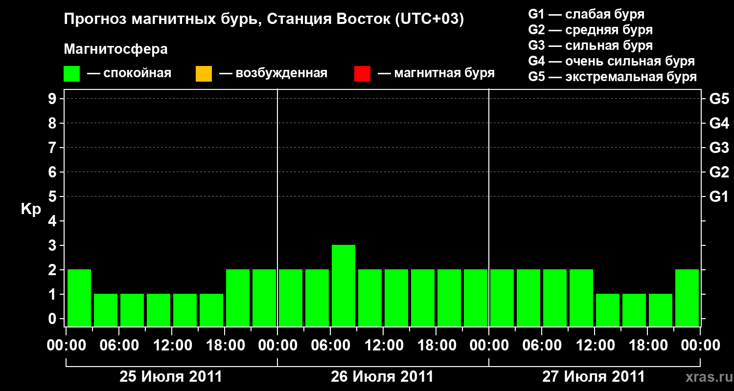 Прогноз магнитных бурь локации Станция Восток — 25 июля 2011 года
