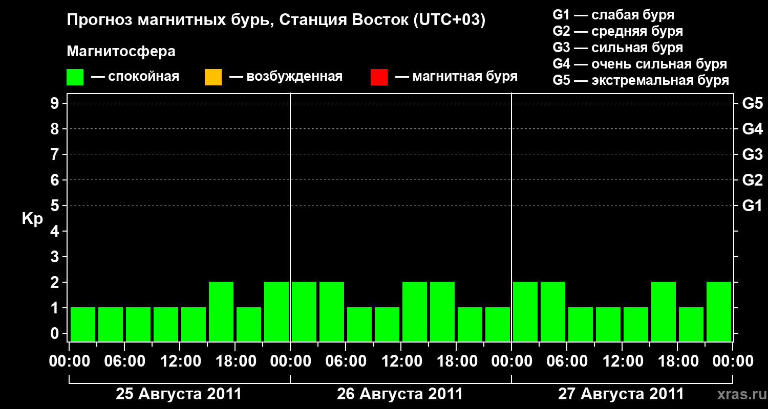 Прогноз магнитных бурь локации Станция Восток — 25 августа 2011 года