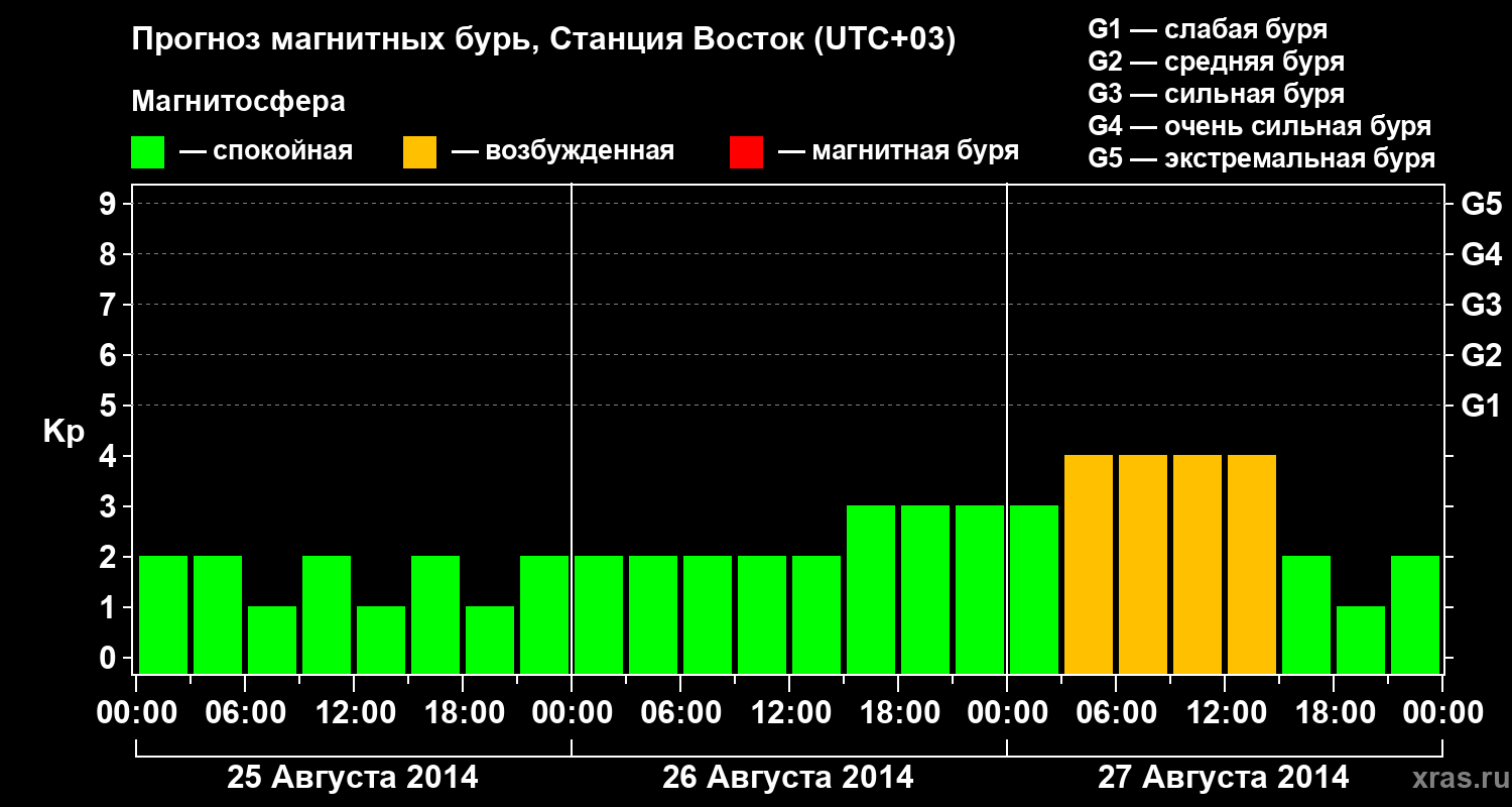 Прогноз магнитных бурь локации Станция Восток — 25 августа 2014 года