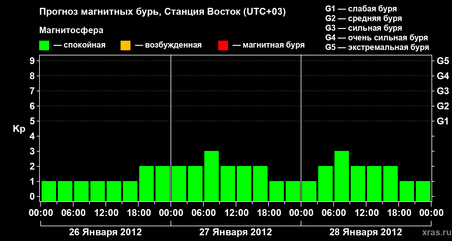 Прогноз магнитных бурь локации Станция Восток — 26 января 2012 года