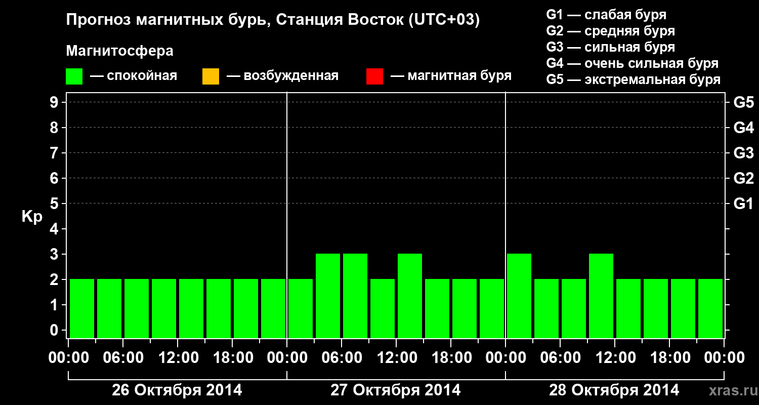 Прогноз магнитных бурь локации Станция Восток — 26 октября 2014 года