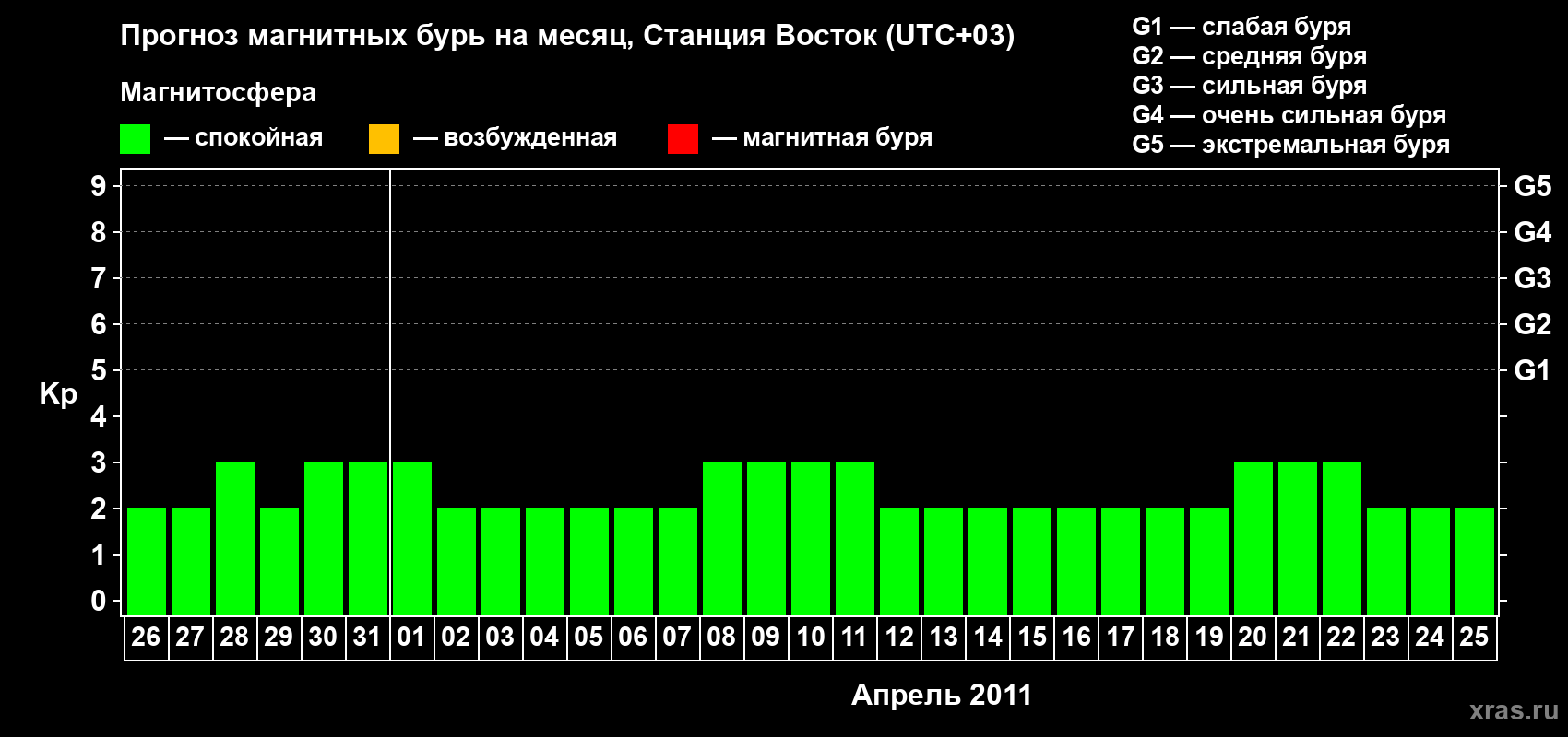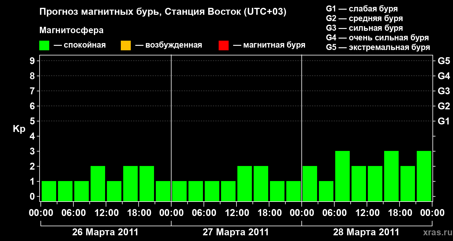 Прогноз магнитных бурь локации Станция Восток — 26 марта 2011 года