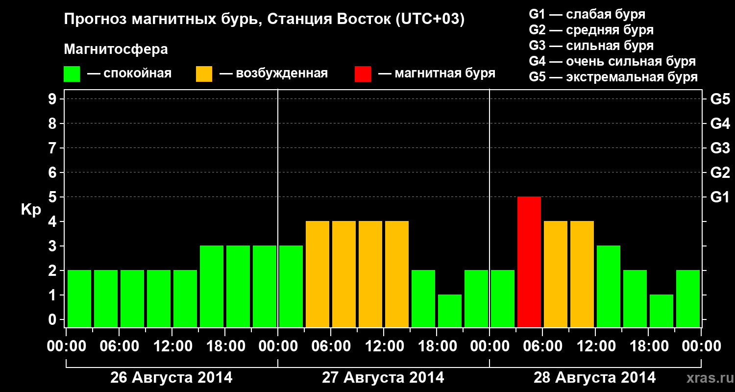 Прогноз магнитных бурь локации Станция Восток — 26 августа 2014 года