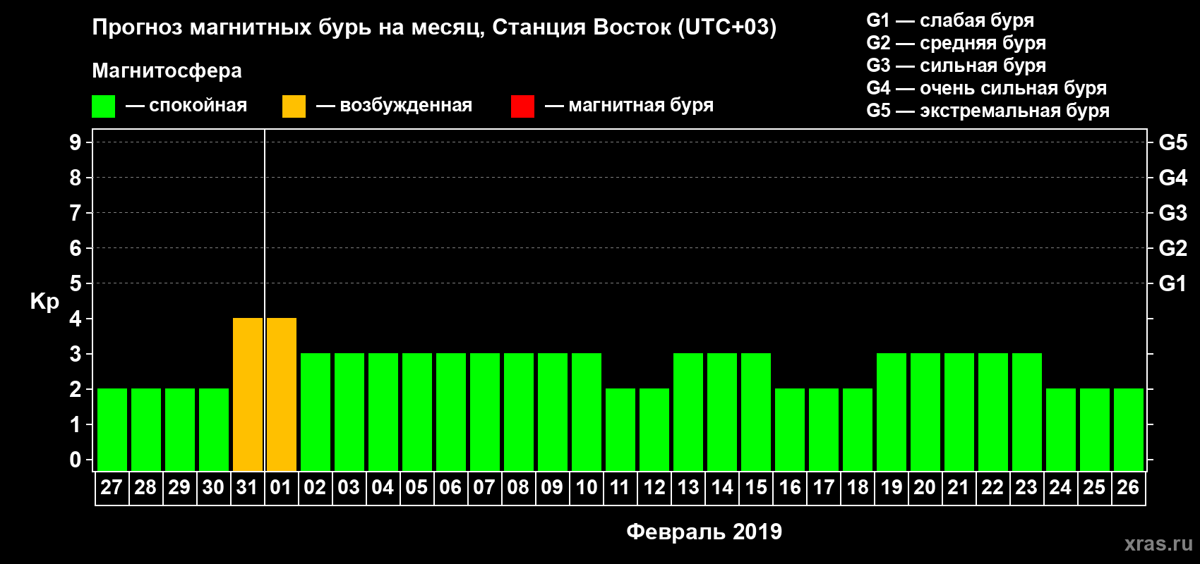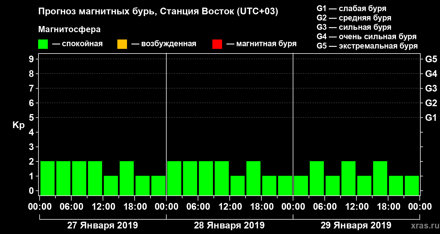 Прогноз магнитных бурь локации Станция Восток — 27 января 2019 года