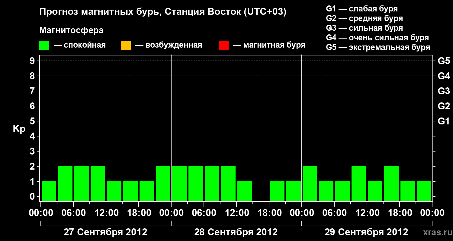 Прогноз магнитных бурь локации Станция Восток — 27 сентября 2012 года