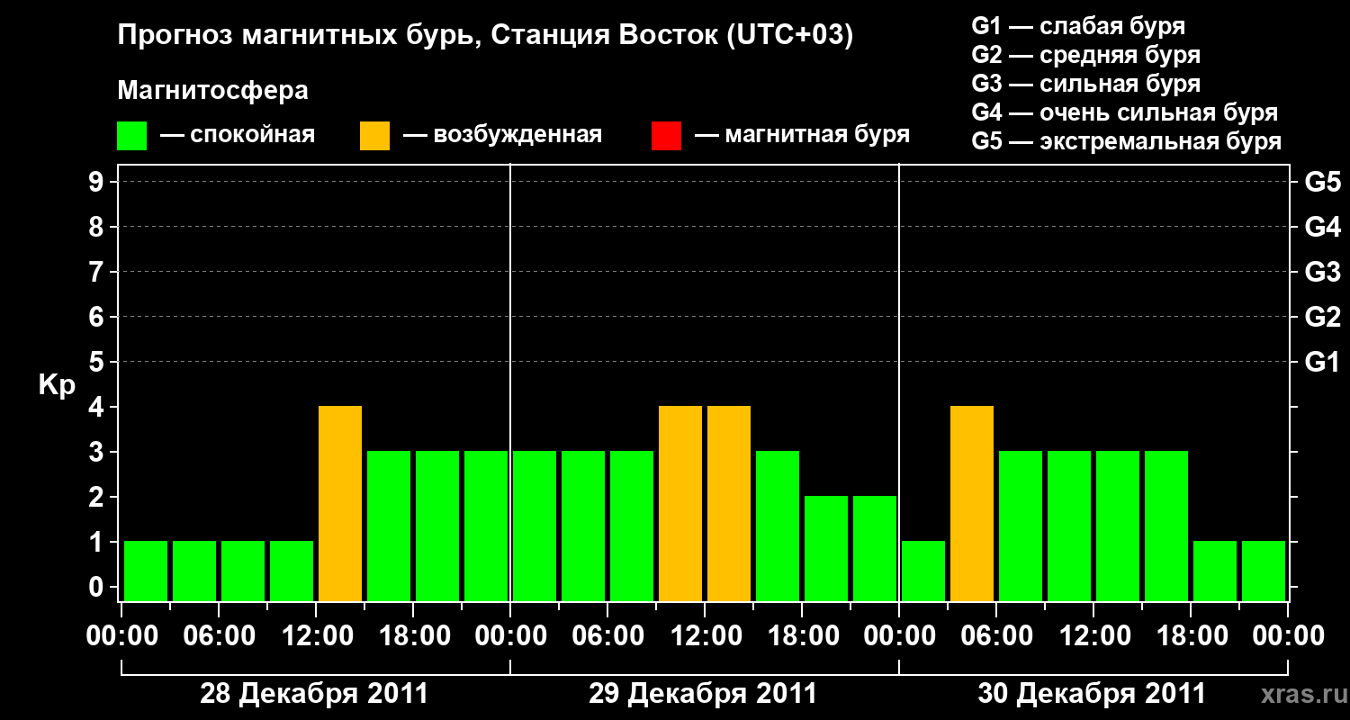 Прогноз магнитных бурь локации Станция Восток — 28 декабря 2011 года