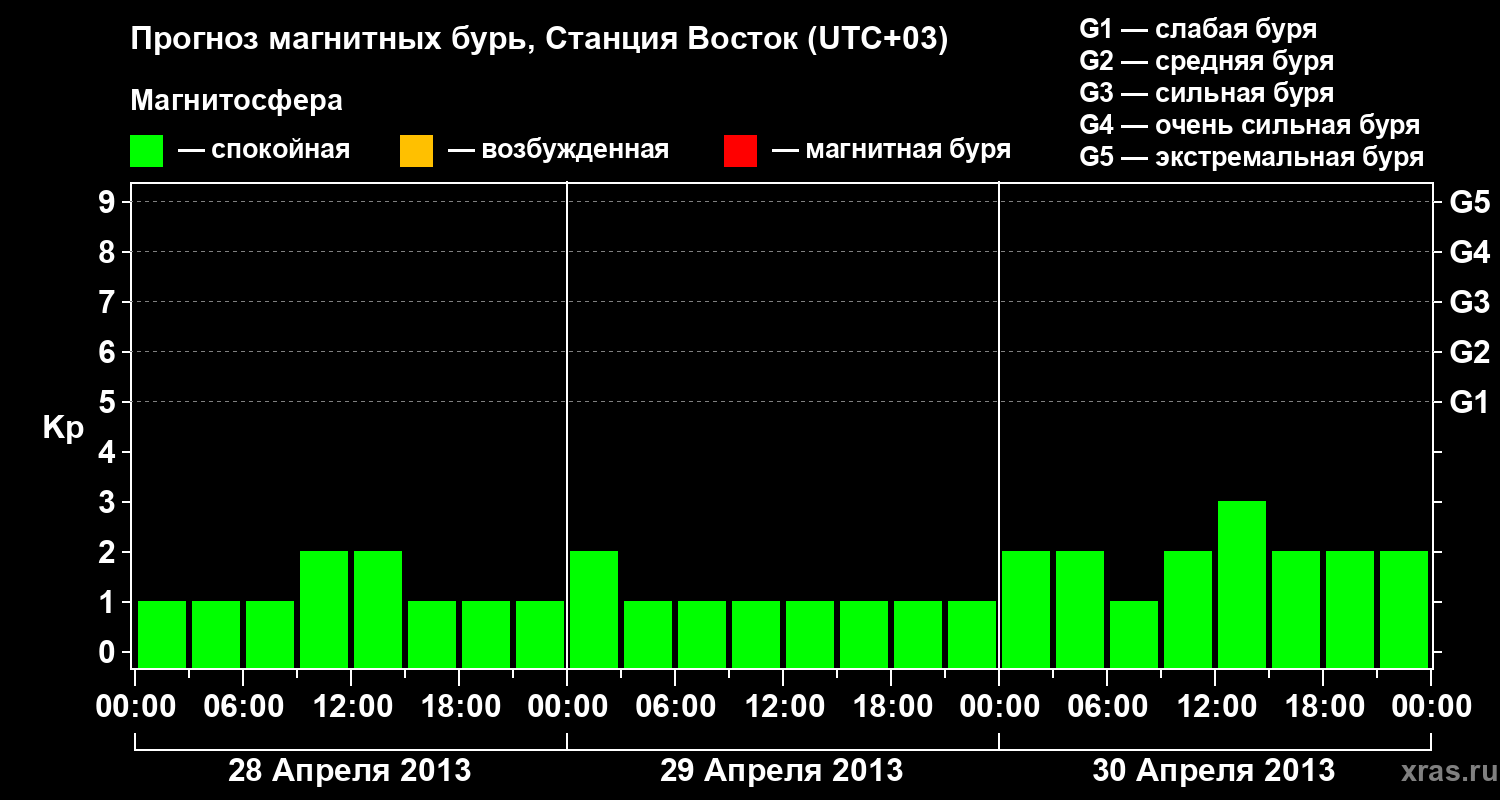 Прогноз магнитных бурь локации Станция Восток — 28 апреля 2013 года
