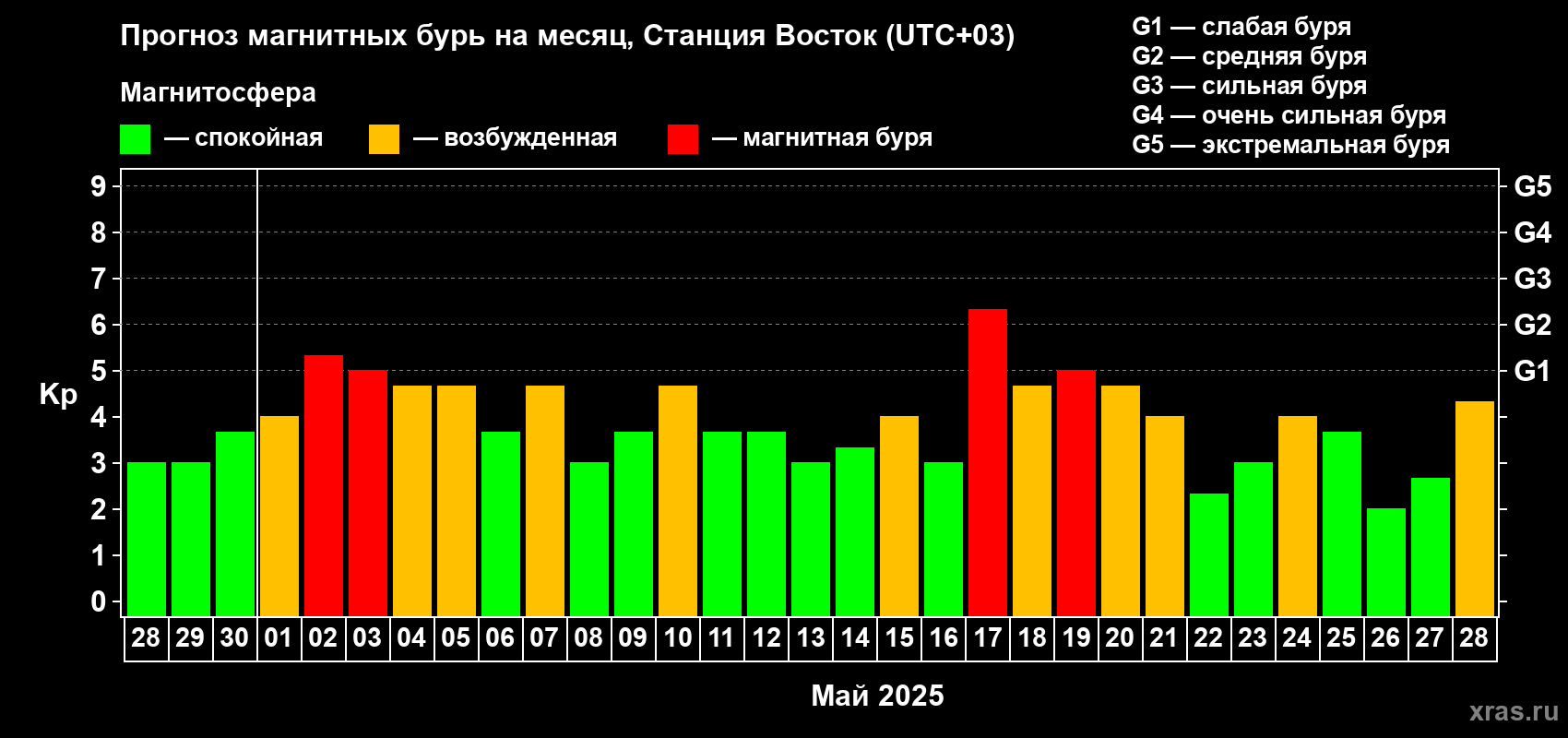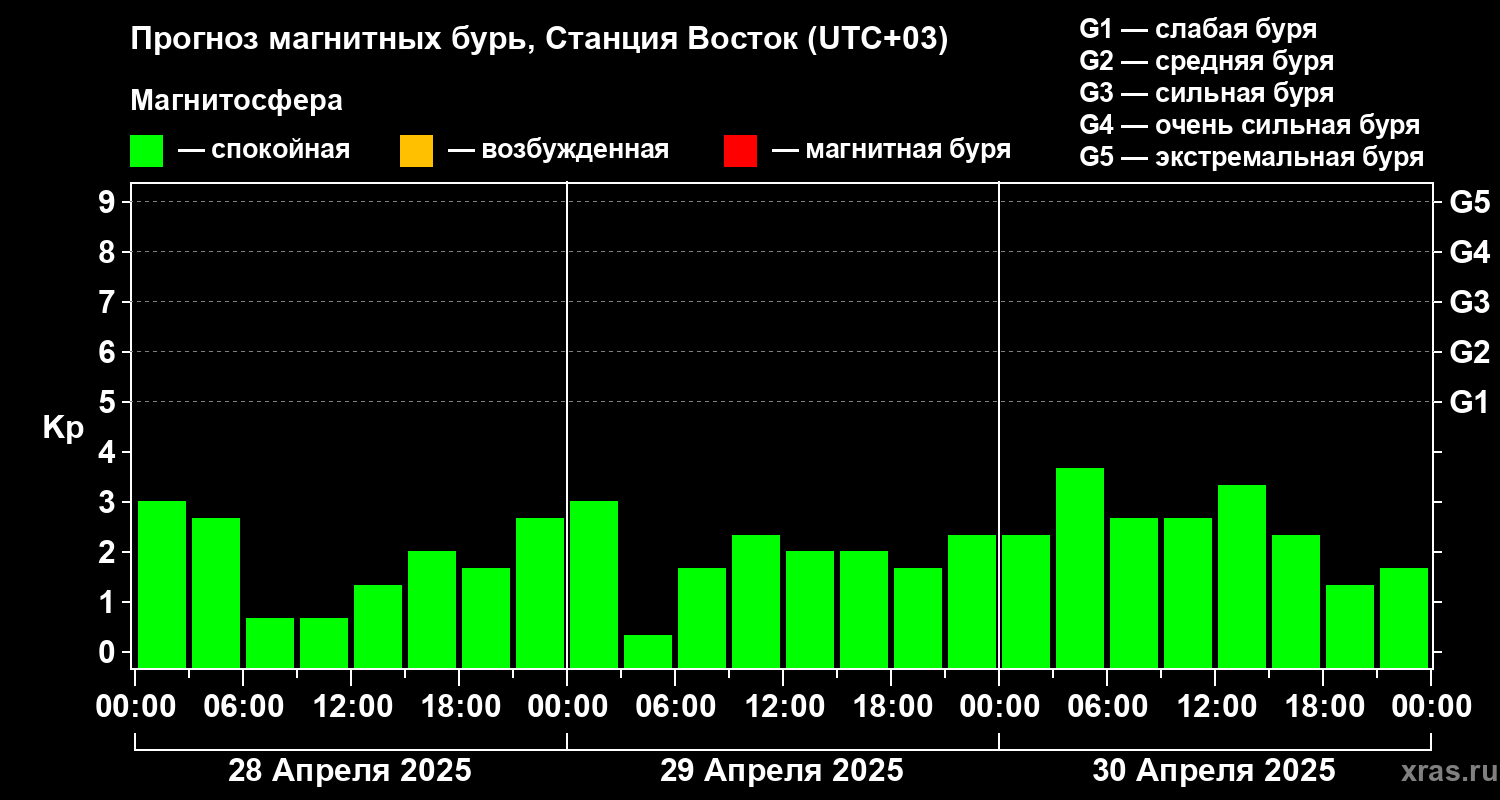 Прогноз магнитных бурь локации Станция Восток — 28 апреля 2025 года