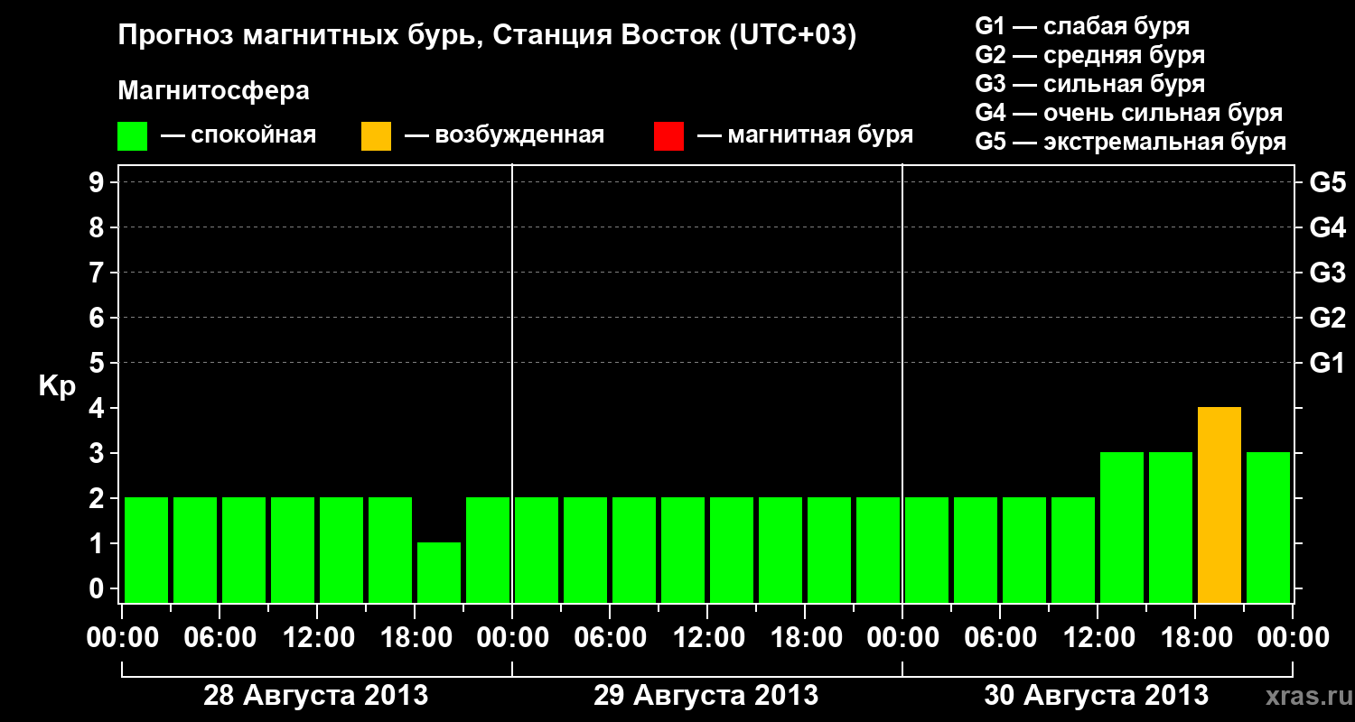 Прогноз магнитных бурь локации Станция Восток — 28 августа 2013 года