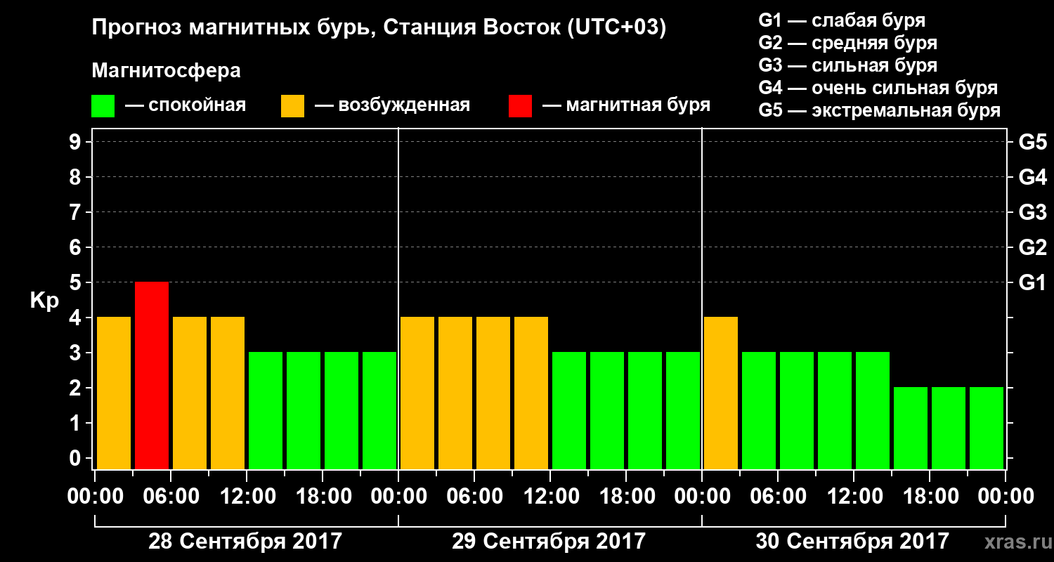 Прогноз магнитных бурь локации Станция Восток — 28 сентября 2017 года