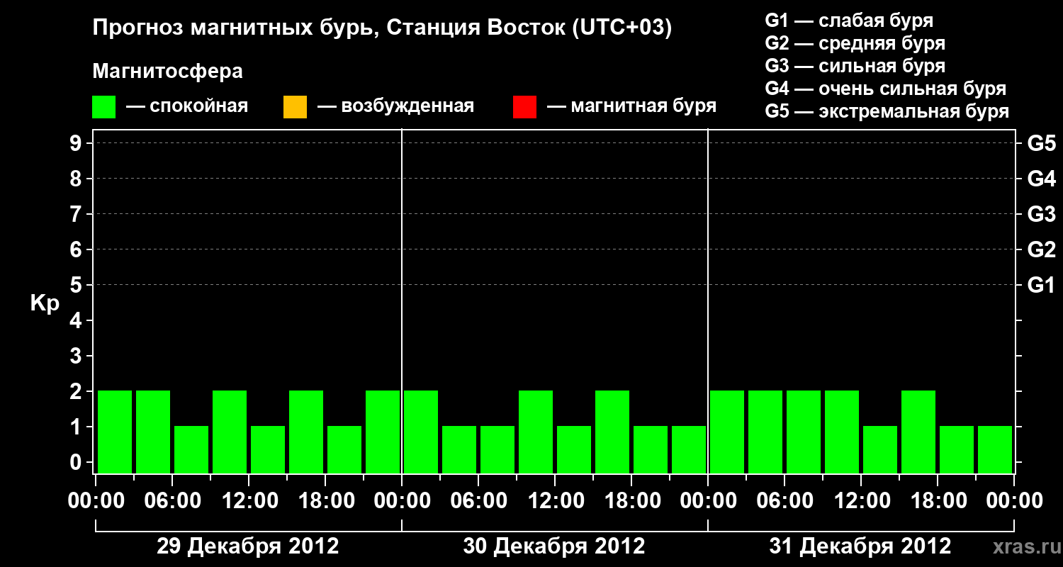 Прогноз магнитных бурь локации Станция Восток — 29 декабря 2012 года