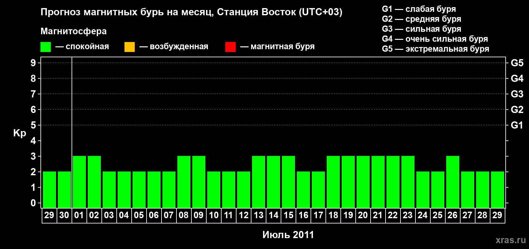 Прогноз магнитных бурь локации Станция Восток — 29 июня 2011 года