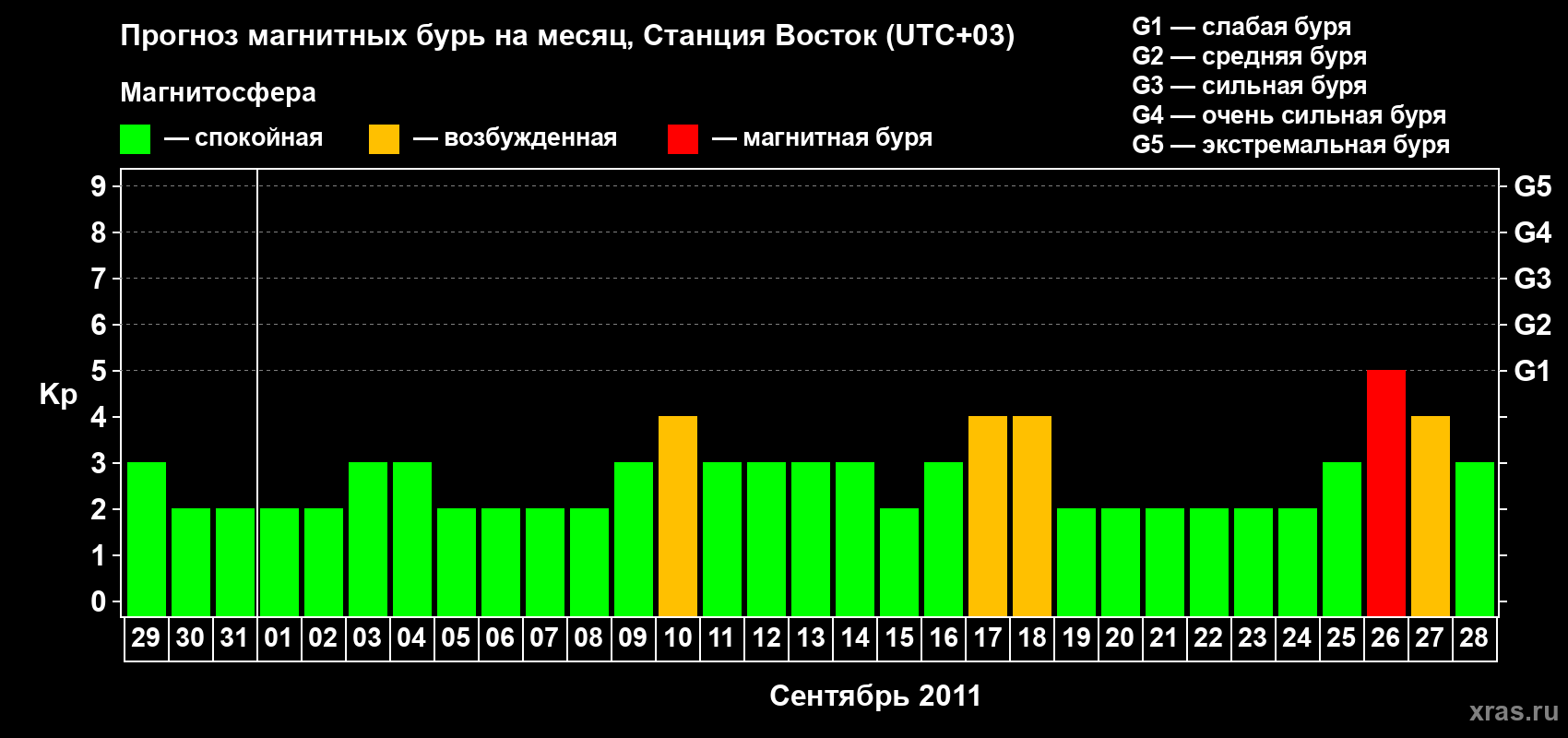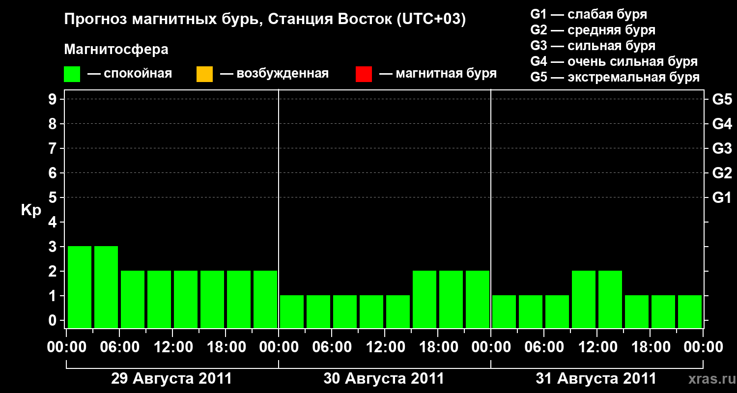 Прогноз магнитных бурь локации Станция Восток — 29 августа 2011 года