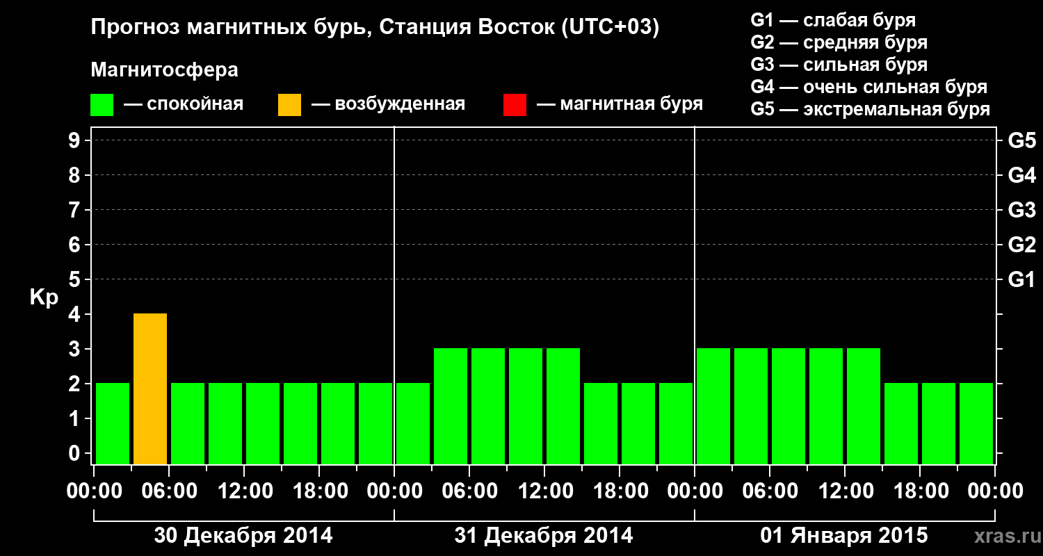 Прогноз магнитных бурь локации Станция Восток — 30 декабря 2014 года