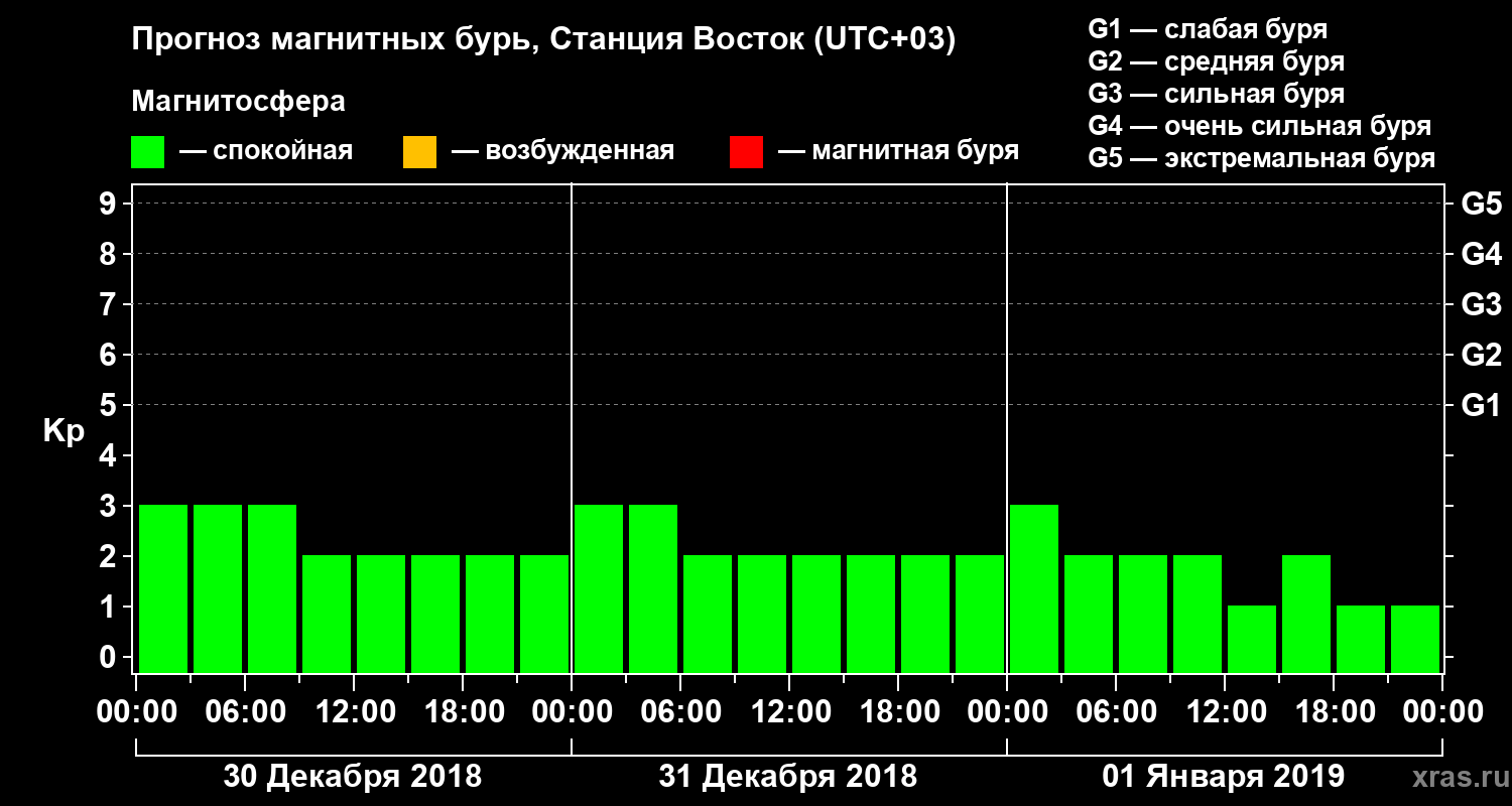 Прогноз магнитных бурь локации Станция Восток — 30 декабря 2018 года