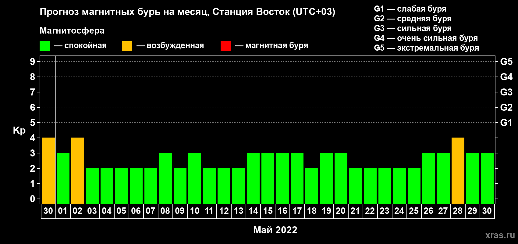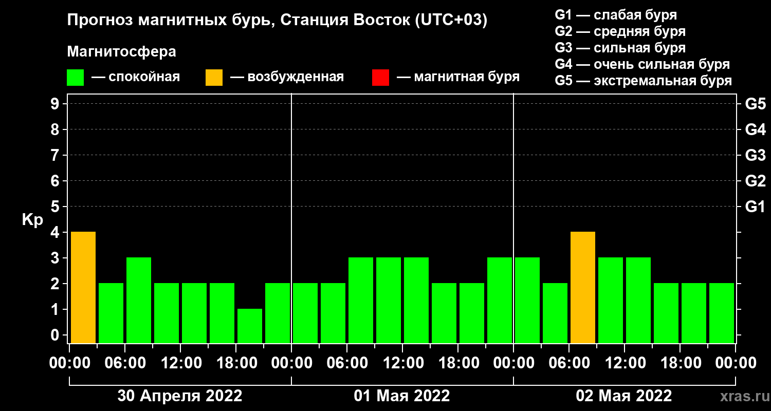 Прогноз магнитных бурь локации Станция Восток — 30 апреля 2022 года