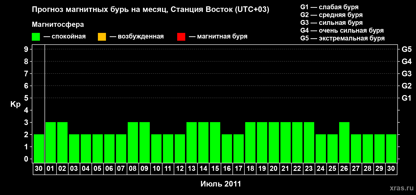 Прогноз магнитных бурь локации Станция Восток — 30 июня 2011 года