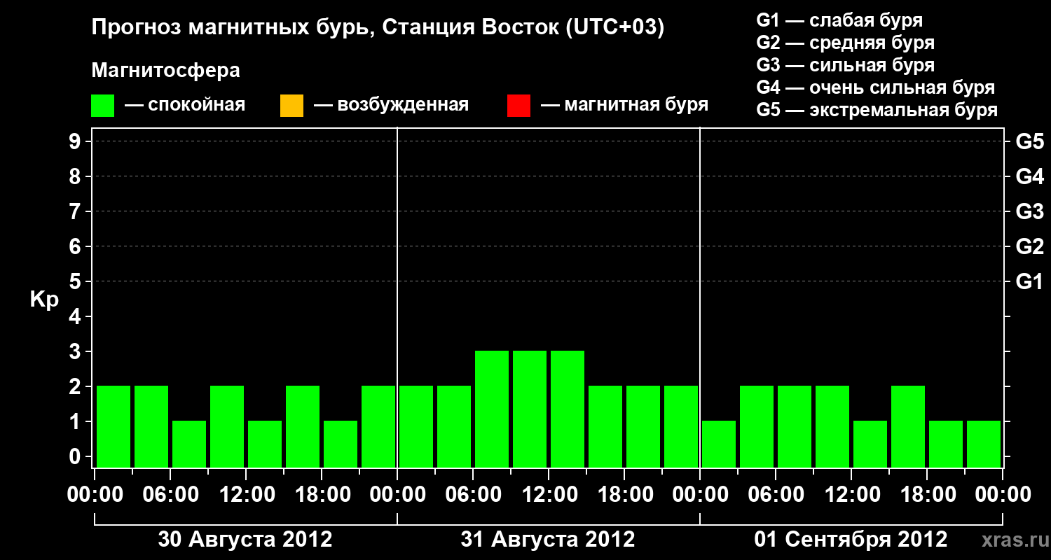 Прогноз магнитных бурь локации Станция Восток — 30 августа 2012 года