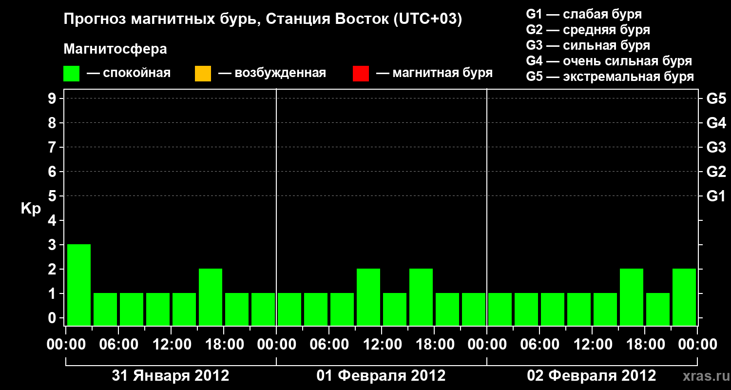 Прогноз магнитных бурь локации Станция Восток — 31 января 2012 года