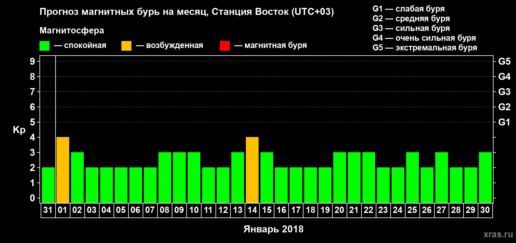 Прогноз магнитных бурь локации Станция Восток — 31 декабря 2017 года