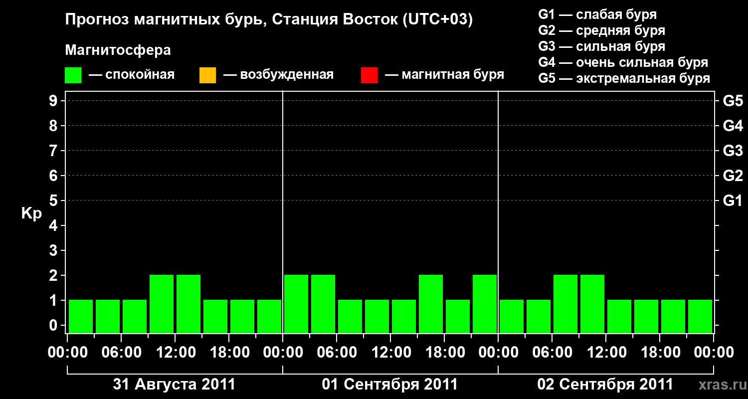 Прогноз магнитных бурь локации Станция Восток — 31 августа 2011 года