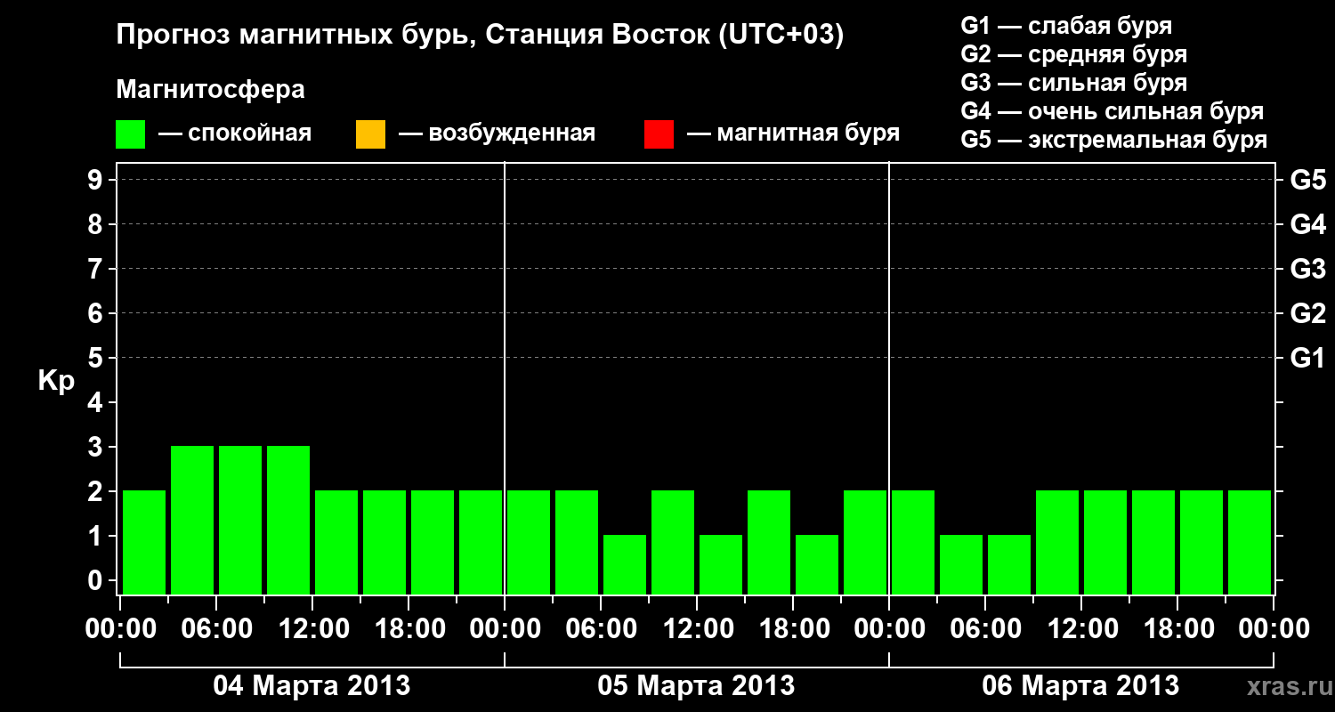 Прогноз магнитных бурь локации Станция Восток — 4 марта 2013 года