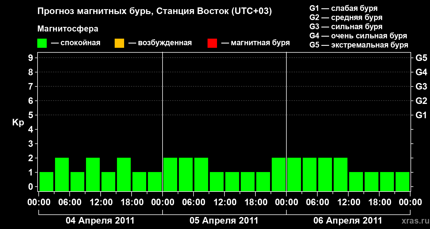 Прогноз магнитных бурь локации Станция Восток — 4 апреля 2011 года