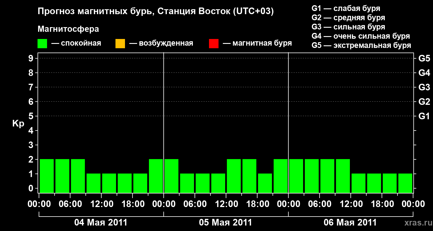 Прогноз магнитных бурь локации Станция Восток — 4 мая 2011 года