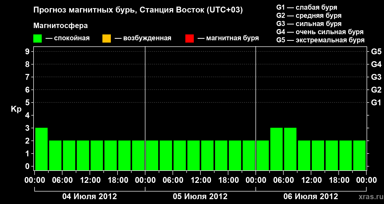 Прогноз магнитных бурь локации Станция Восток — 4 июля 2012 года