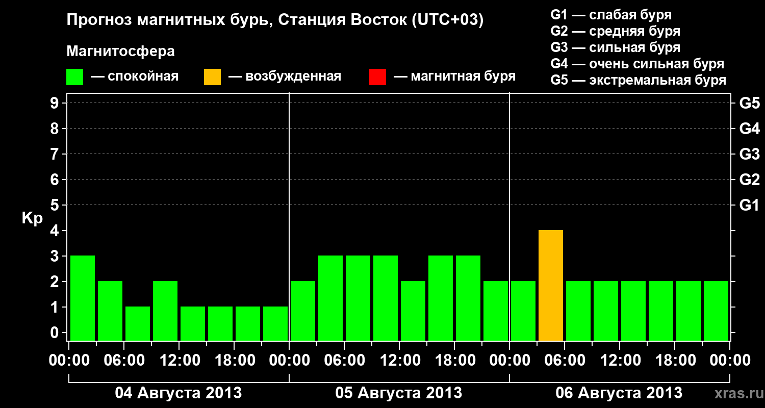Прогноз магнитных бурь локации Станция Восток — 4 августа 2013 года