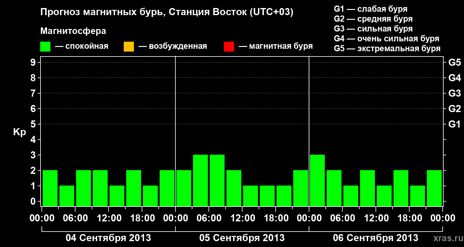 Прогноз магнитных бурь локации Станция Восток — 4 сентября 2013 года