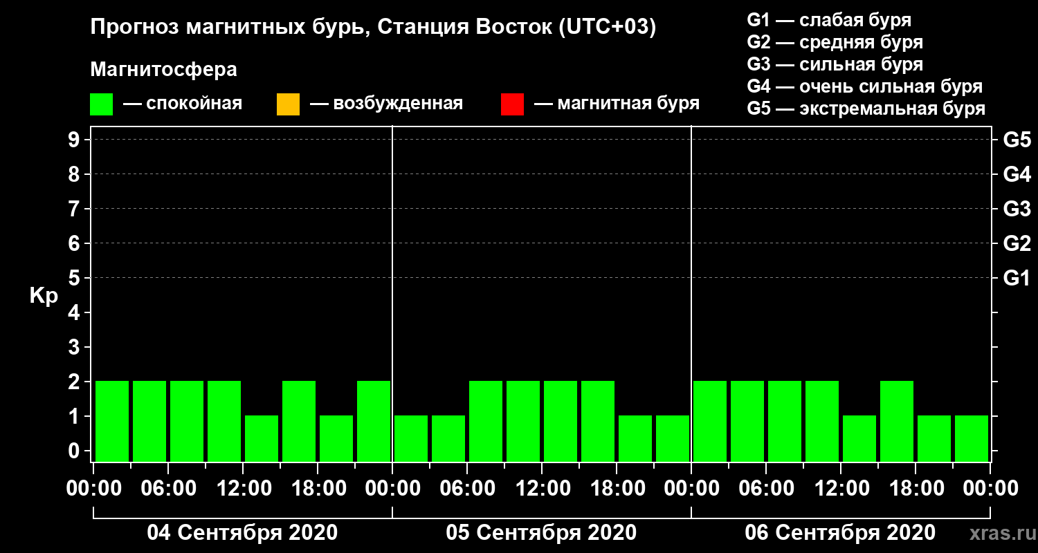 Прогноз магнитных бурь локации Станция Восток — 4 сентября 2020 года